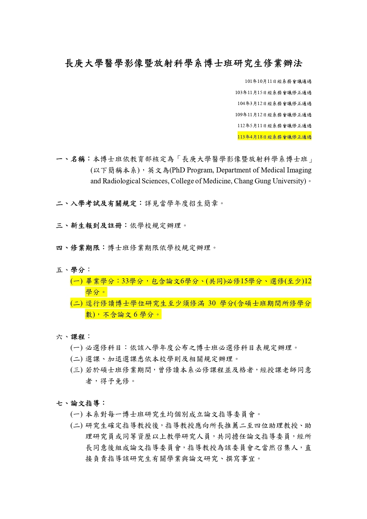 醫學影像暨放射科學組博士班研究生修業辦法113